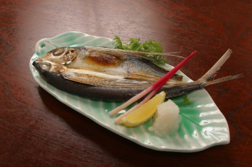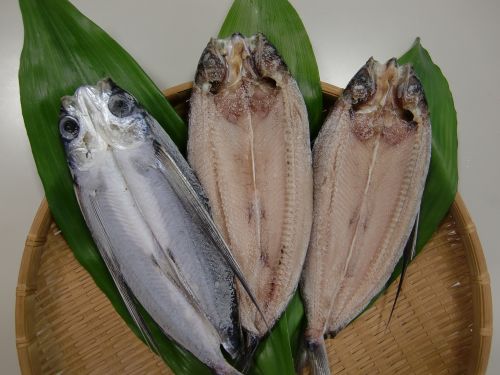 五島で旬の時期に漁獲される大型のあご(飛魚)を水揚げ直後に開き、島の椿葉を使用した珍しい海塩で干物にしております。この塩は塩化ナトリウム含有量も低く甘塩ですので、魚の美味しさを堪能できます。
